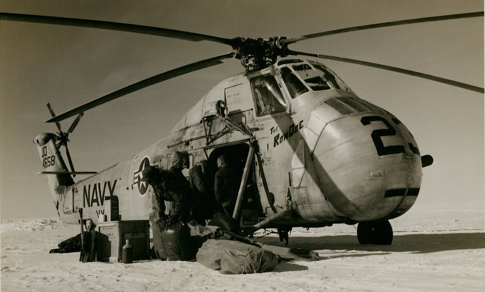 DescriptionHelicopter of VX-6 at McMurdo Station is loaded with supplies for an ambitious Antarctic mapping project that was part of Operation Deep Freeze '62. Called Topo South| The project had scientists and Navy men in the field for several weeks. The data they gathered with electronic measuring devices provides ground control for mapping of 47500 milesPhotographerUnknownSeason1962-1963Date Taken1962-1963 SeasonOriginalPrintNo. People2-5LocationMcMurdo Station