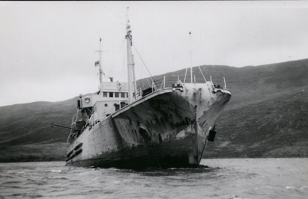 HMNZS 'Endeavour' Mk1| supply ship| Campbell Island (?)| Dec1956/Jan1957