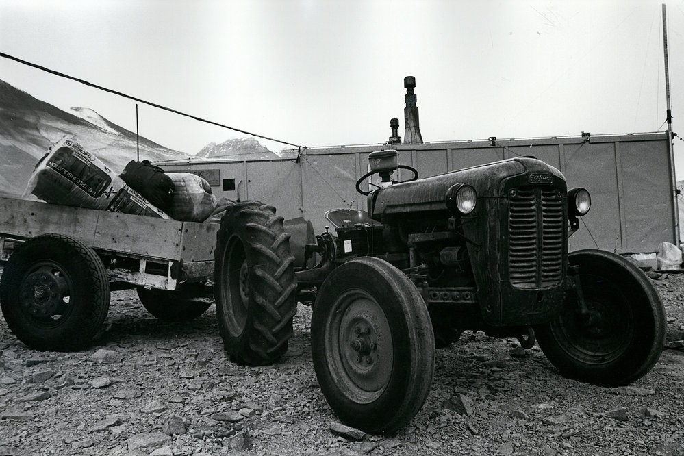 DescriptionFerguson tractor and trailer| Vanda Station| Dec 1973PhotographerFrederick P SzydlikUnknownSeason1973-1974Date Taken1973-1974 SeasonOriginalPrintLocationVanda Station