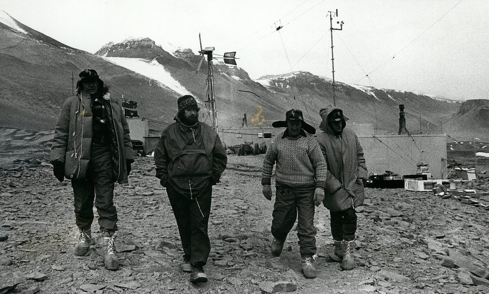 DescriptionTony Bromley (second from left) escorts Bruce Barclay| Bob Miller and Wing Commander Colin Rudd at Vanda Station| December 1973DepictsTony BromleyBruce BarclayBob MillerColin RuddPhotographerFrederick P SzydlikUnknownSeason1973-1974Date Taken1973-1974 SeasonOriginalPrintNo. People2-5LocationVanda Station