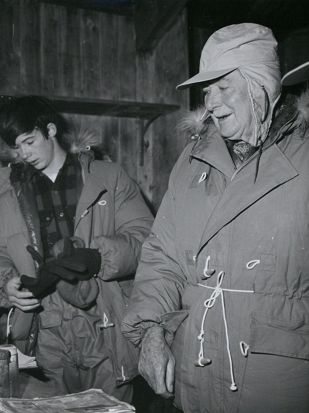 Invited guests| Sir Arthur Porritt (Governor General of NZ) and son Jeremy Porritt at Shackleton's Hut. Antarctica NZ, accessed 09/04/2026, https://adam.antarcticanz.govt.nz/nodes/view/41595