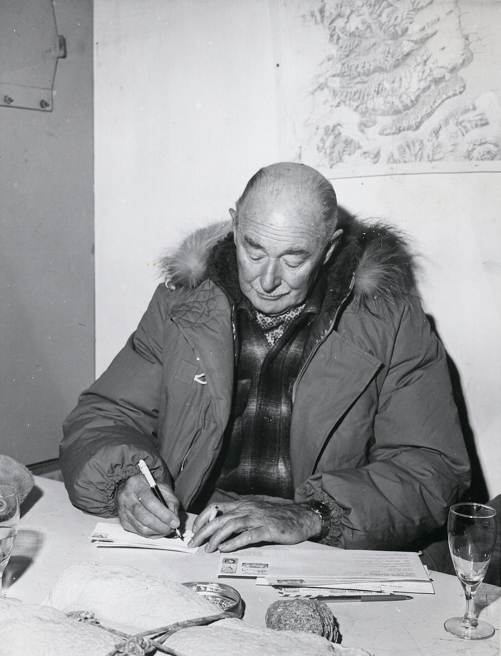 Invited guests| Sir Arthur Porritt (Governor General of NZ)| signing mail at Scott Base. Antarctica NZ, accessed 09/04/2026, https://adam.antarcticanz.govt.nz/nodes/view/41597