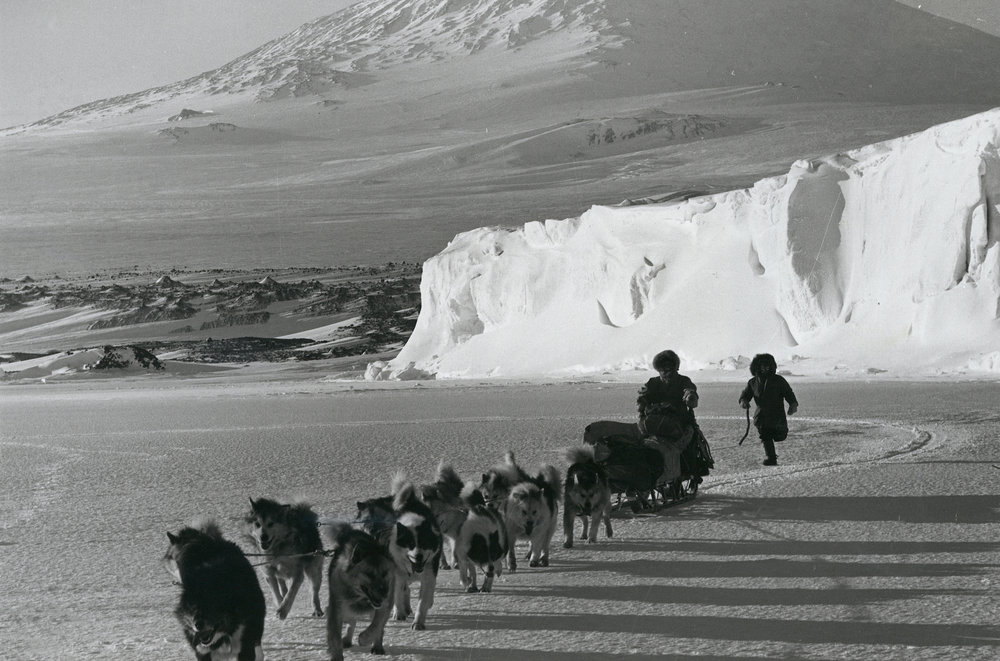 Dog team passing stranded ice berg| Cape Evans| 1971-1973