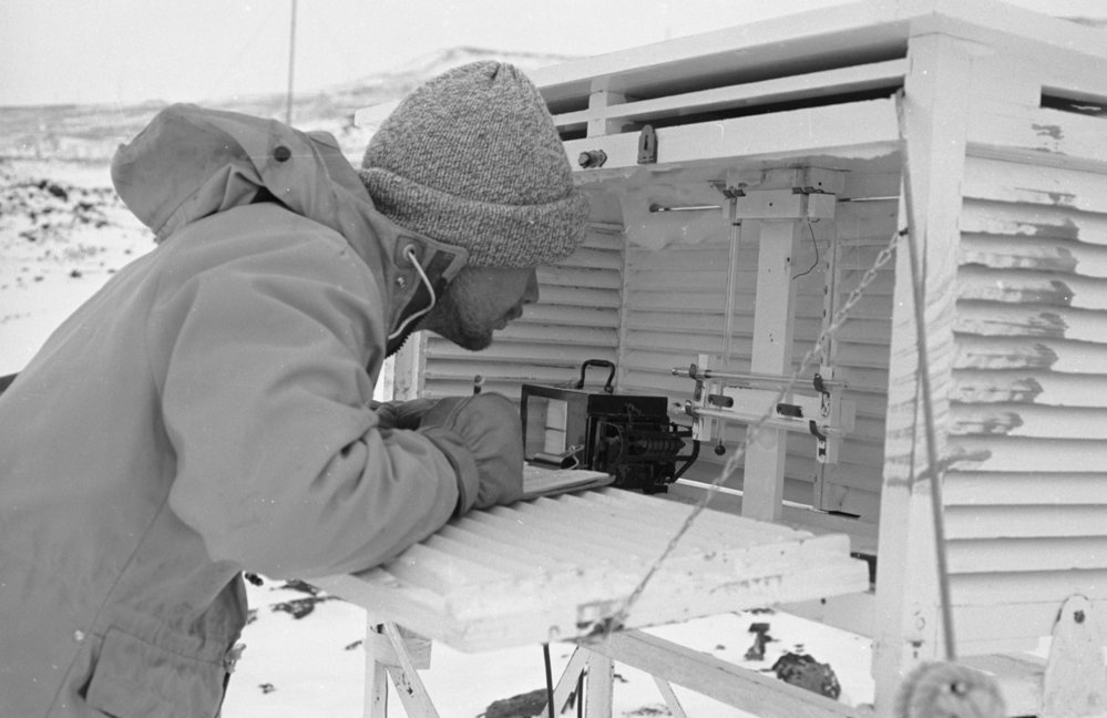 Don Wilkinson checking the Stevensson's screen at Scott Base