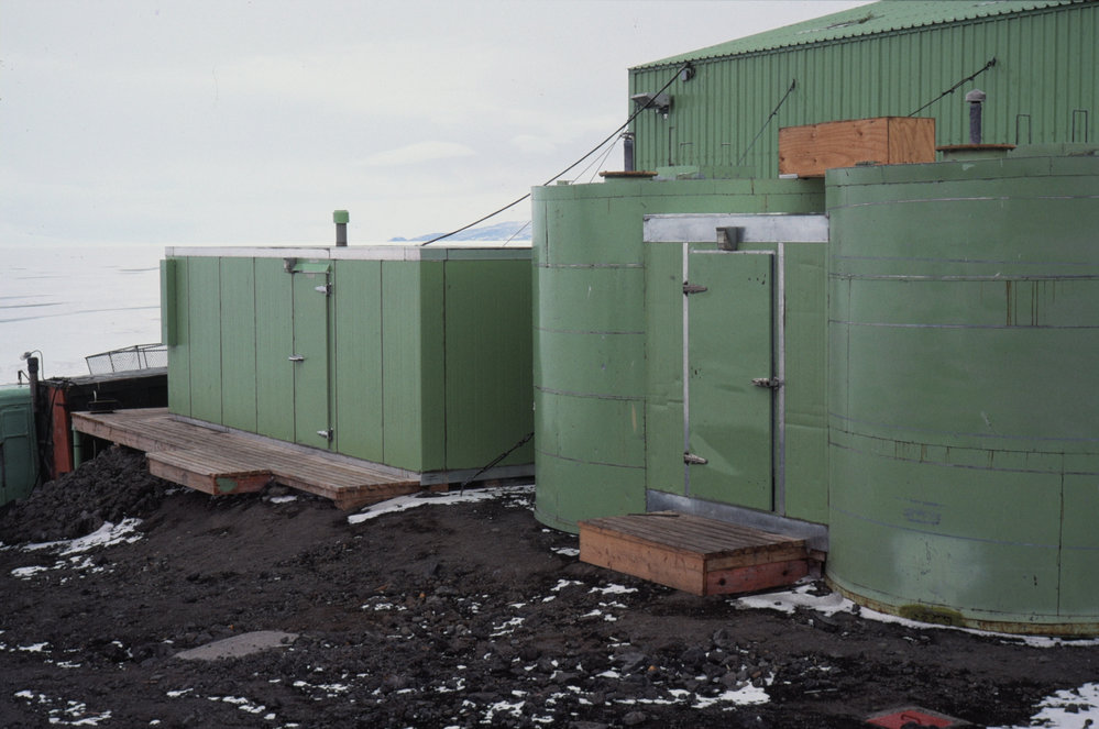 DescriptionHydroponics Unit, Exterior, Scott BasePhotographerKeith MartinSeason1986-1987Date Taken1986-1987 SeasonOriginalSlideLocationScott BaseGeolocation[1] Position
