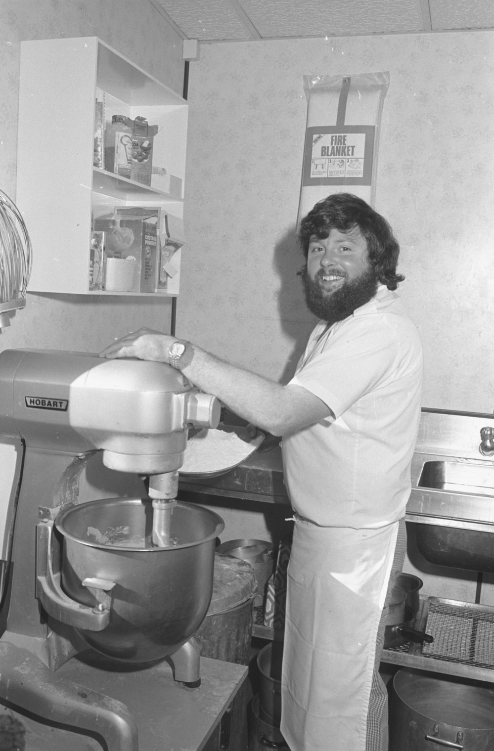 DescriptionSteve Mosley - chef in kitchen.DepictsSteve Mosley PhotographerLinda HarrisonSeason1985-1986Date Taken1985-1986 SeasonOriginalFilmNo. People1LocationScott Base