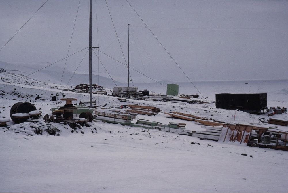 DescriptionOutside Storage Area, Scott BasePhotographerKeith MartinSeason1986-1987Date Taken1986-1987 SeasonOriginalSlideLocationScott BaseGeolocation[1] Position