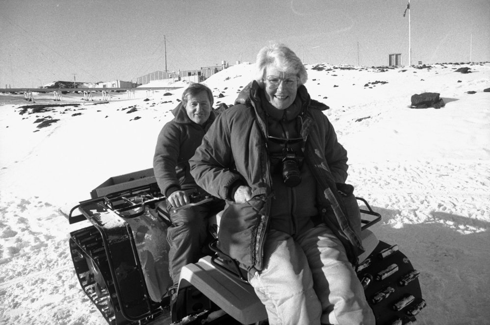 DescriptionInvited visitors| Jim Bolger| Margaret Austin| on YamahaDepictsMargaret AustinJim BolgerPhotographerUnknownSeason1988-1989Date Taken1988-1989 SeasonOriginalFilmNo. People2-5LocationNear Scott Base