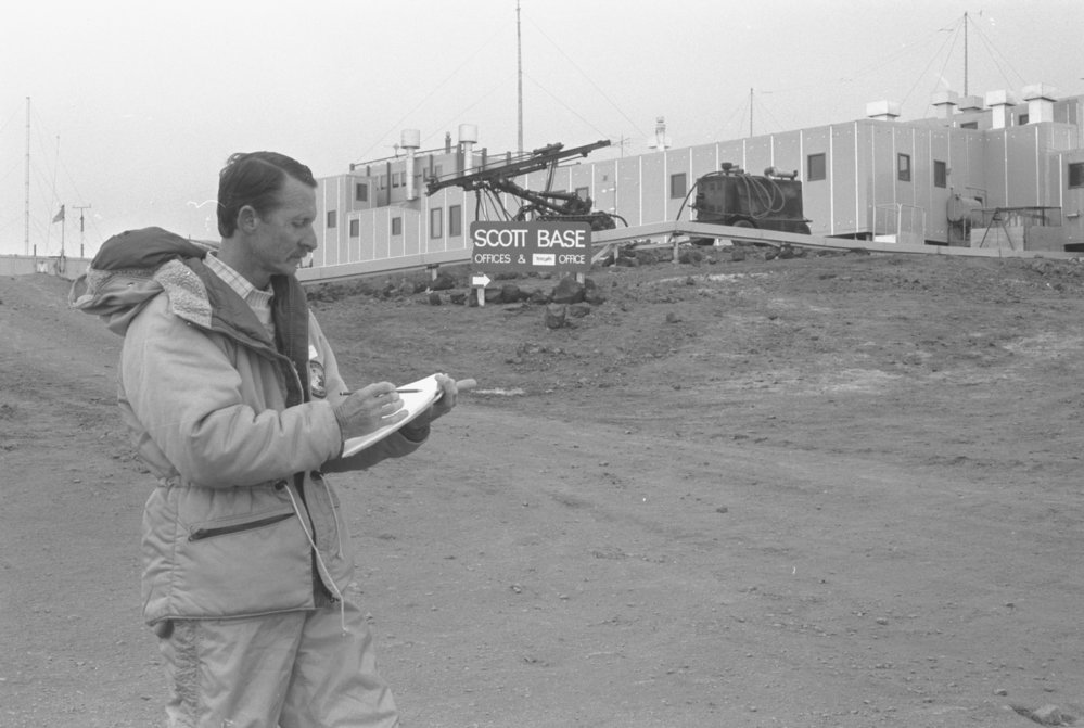 DescriptionArt| NZ artist Jonathan White at work outside Scott BaseDepictsJonathan WhitePhotographerUnknownSeason1989-1990Date Taken1989-1990 SeasonOriginalFilmNo. People1LocationScott Base