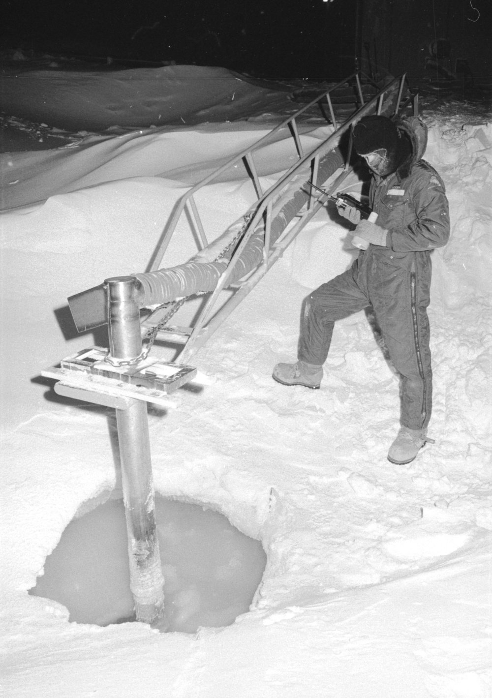 DescriptionIntake pump for reverse osmosis plant at Scott Base.PhotographerKim WesterskovSeason1990-1991Date Taken1990-1991 SeasonOriginalFilmNo. People1LocationScott Base