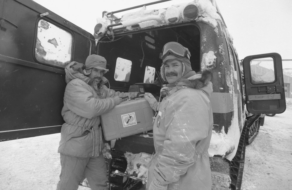 DescriptionDOSLI surveyors off on a mapping missionPhotographerCath GilmourUnknownUnknownDate Taken1990-1991 SeasonOriginalFilmNo. People2-52-5LocationScott Base