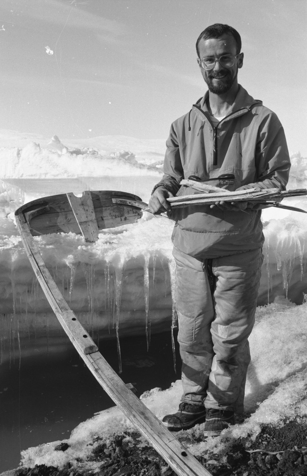 Ross McDonald winterover manager with parts of a dinghy found after summer's melt. Antarctica NZ, accessed 25/03/2026, https://adam.antarcticanz.govt.nz/nodes/view/42808