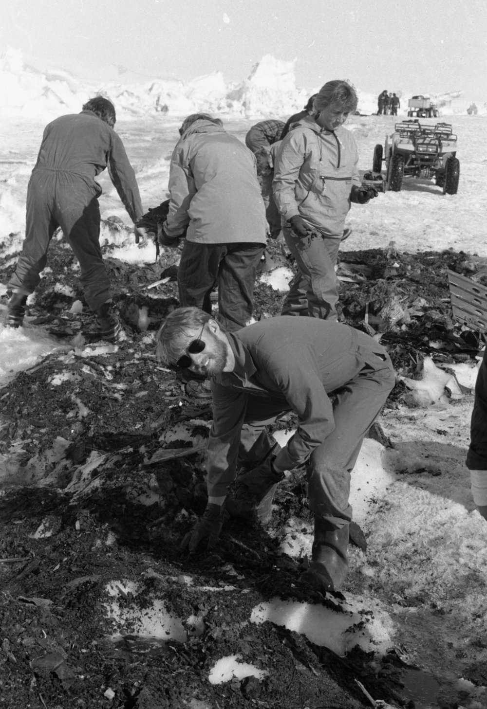 DescriptionChris McCarroll| with other Scott Basers| cleaning up rubbish from first years at Scott Base| uncovered due to the summer's extraordinary meltDepictsChris McCarrollChris McCarrolPhotographerCath GilmourUnknownUnknownDate Taken1990-1991 SeasonOriginalFilmNo. People5-102-5LocationNear Scott BaseScott Base