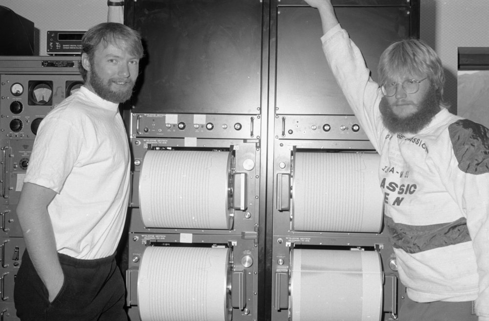DescriptionWinterover 1990-1991| Chris McCarrol and Peter Kraak| lab techsDepictsChris McCarrolPeter KraakPhotographerCath GilmourUnknownSeason1990-1991Date Taken1990-1991 SeasonOriginalFilmNo. People2-5LocationScott Base