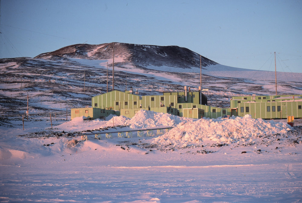DescriptionScott Base with Crater Hill BehindPhotographerChris RudgeSeason1987-1988Date Taken1987-1988 SeasonOriginalSlideLocationScott BaseGeolocation[1] Position