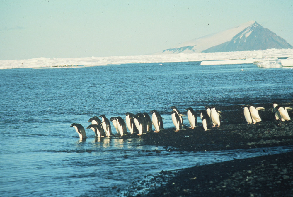 DescriptionAnimals, Penguins, Adelie about to enter the seaPhotographerKim WesterskovSeason1982-1983Date Taken1982-1983 SeasonOriginalSlideCopyright OwnerKim WesterskovLocationCape BirdGeolocation[1] Position