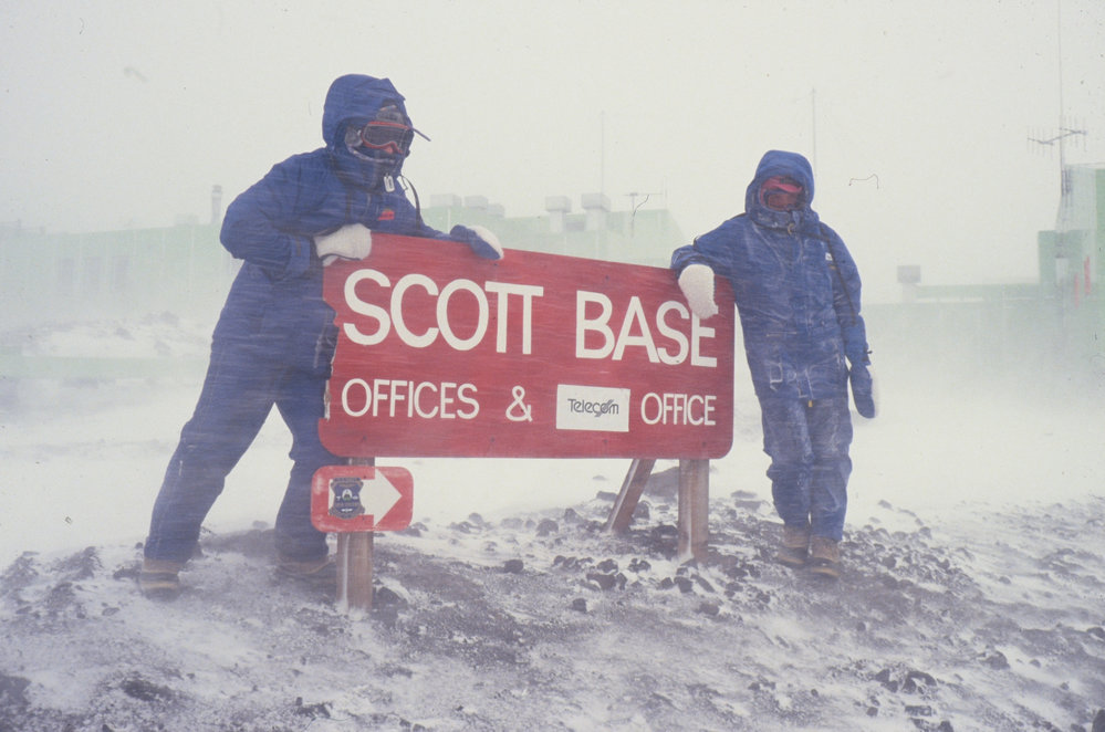 DescriptionNext to Scott Base Office Sign in a BlizzardSeason1993-1994Date Taken1993-1994 SeasonOriginalSlideNo. People2-5LocationScott BaseGeolocation[1] Position
