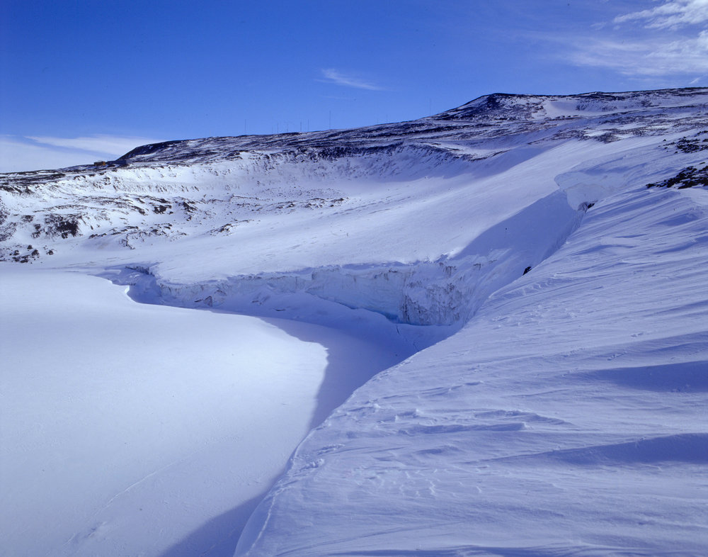 DescriptionAerial shot of small residual glacier west of Scott Base (old ski field).PhotographerCraig PottonEventK394aSeason2000-2001Date Taken2000-2001 SeasonOriginalFilmLocationRoss Island