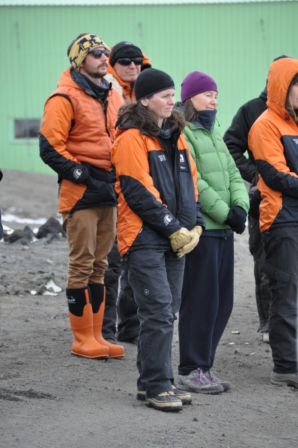 Becky Goodsell, Winter Leader 2015 during lowering of summer flag ceremony for 2014/15 season. Antarctica NZ, accessed 13/04/2026, https://adam.antarcticanz.govt.nz/nodes/view/44948