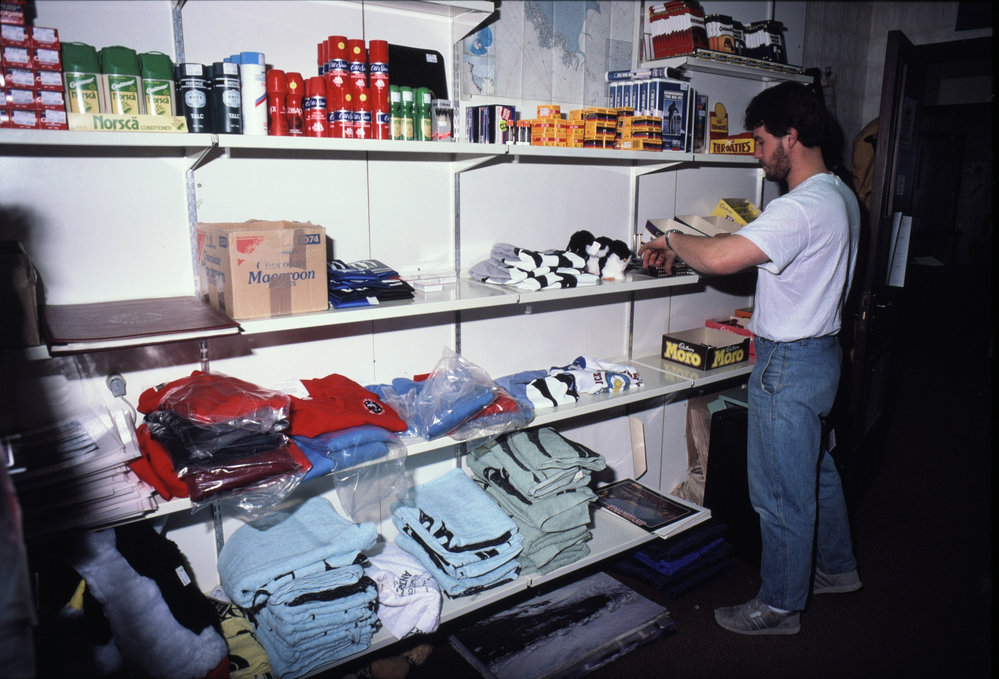 DescriptionScott Base Shop. Note large quantities of 'Old Spice"PhotographerChris RudgeSeason1987-1988Date Taken1987-1988 SeasonOriginalSlideNo. People1LocationScott BaseGeolocation[1] Position