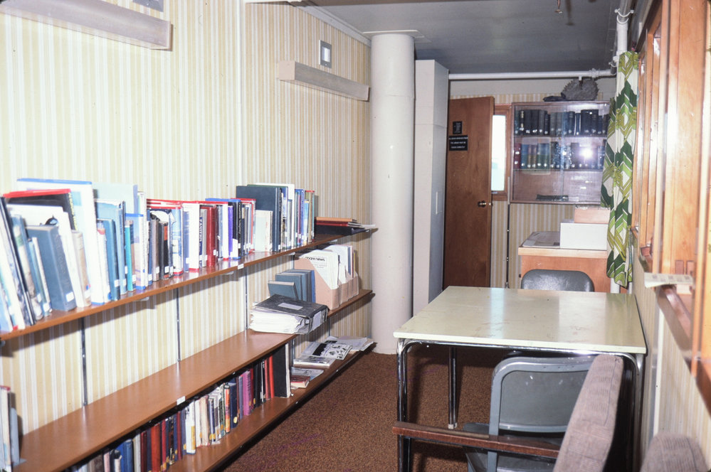 DescriptionScott Base libraryPhotographerLinda HarrisonSeason1985-1986Date TakenBetween 1st October 1985 and 31st October 1985OriginalSlideLocationScott BaseGeolocation[1] Position