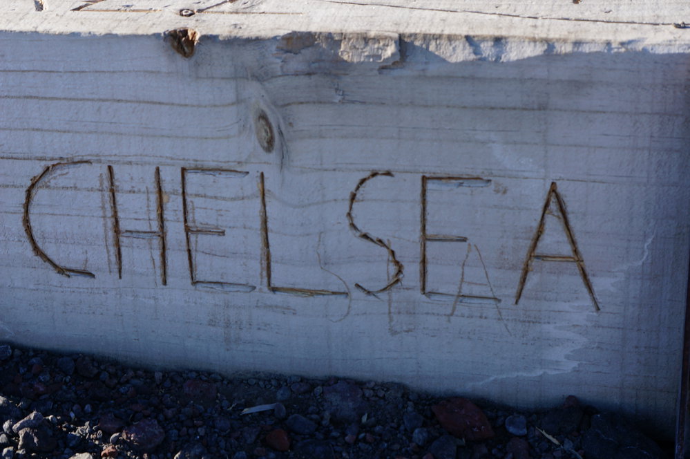 Names carved into the steps leading to the Cape Bird hut
