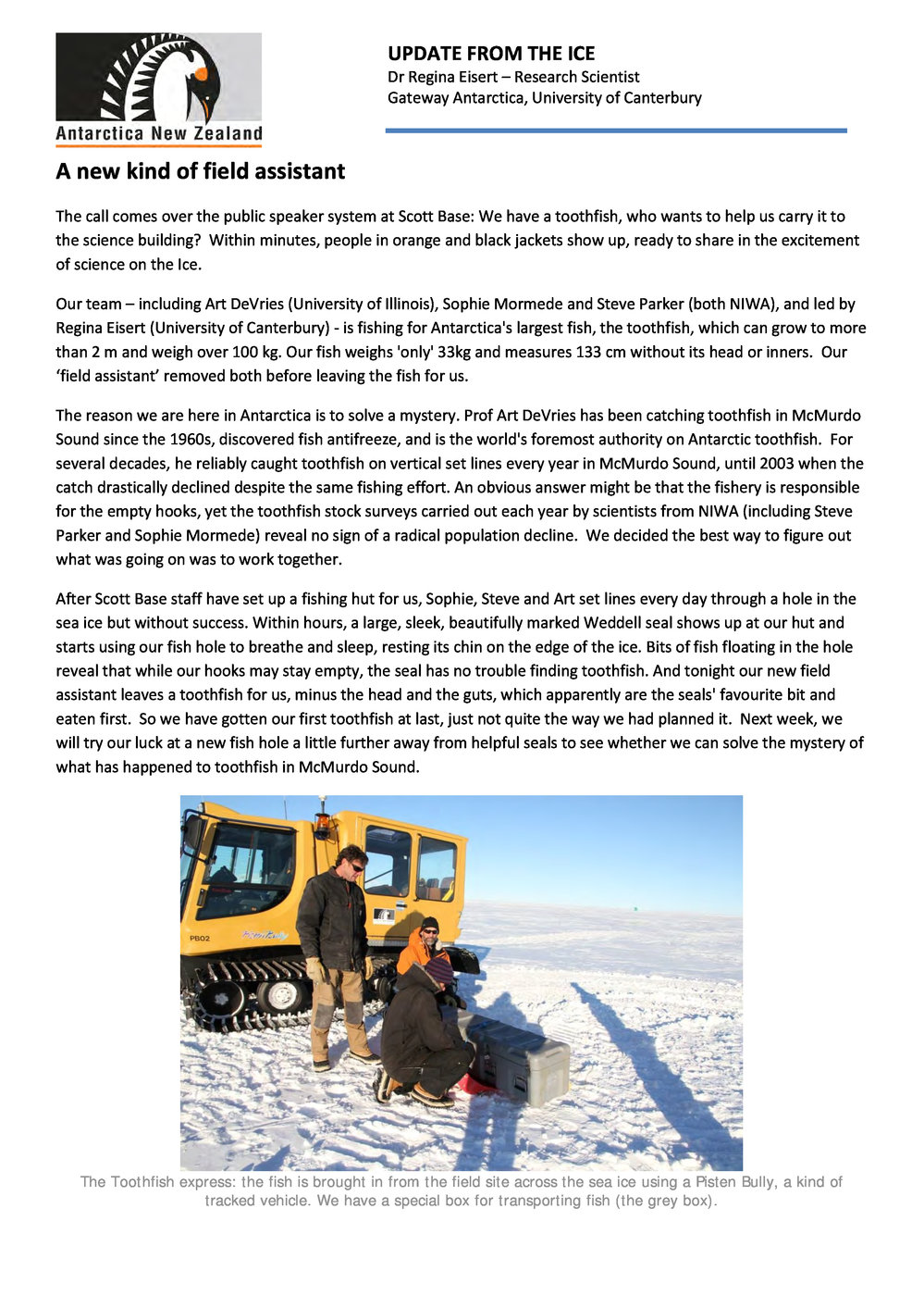 Regina Eisert, Update from the ice - A new kind of field assistant. Antarctica NZ, accessed 08/04/2026, https://adam.antarcticanz.govt.nz/nodes/view/45092