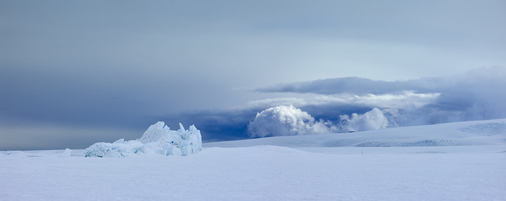 Stormy sky near Turtle Rock with iceberg