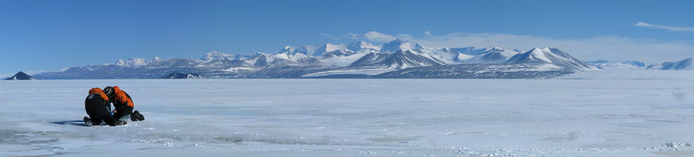 K001D sampling dust on sea ice, McMurdo Sound, photo by Dan Zwartz