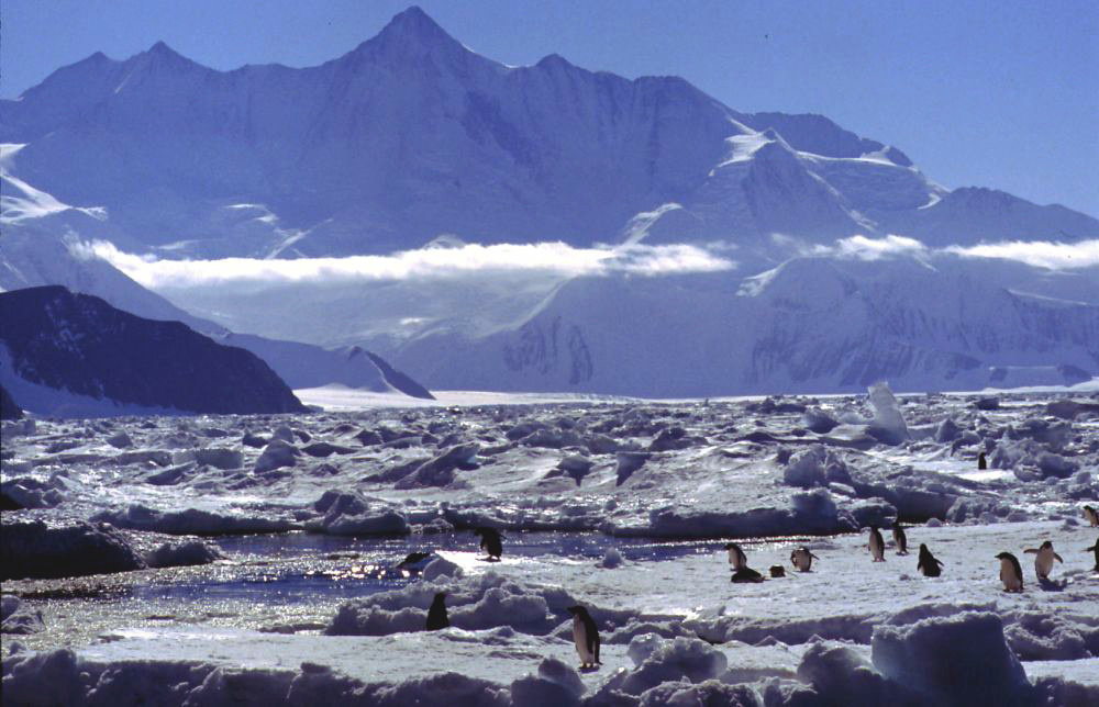 Sea ice, penguins, Mt Herschel