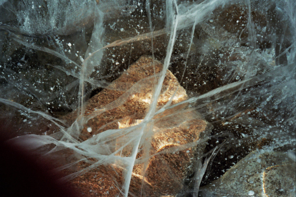 Rocks on Lake Bottom seen though Ice