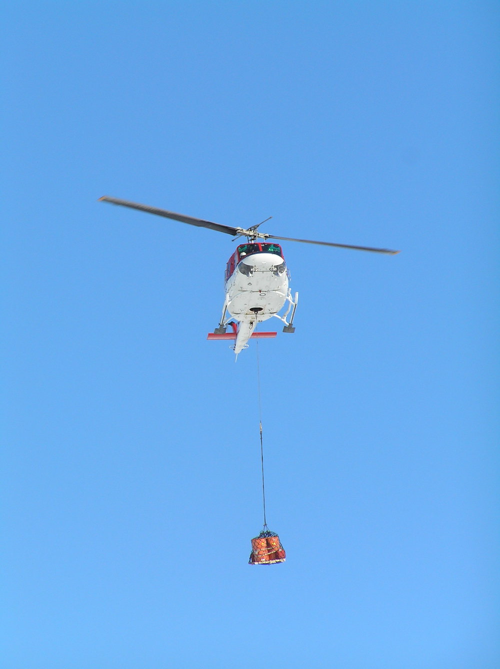 Helicopter Arriving with a Skidoo in a Sling