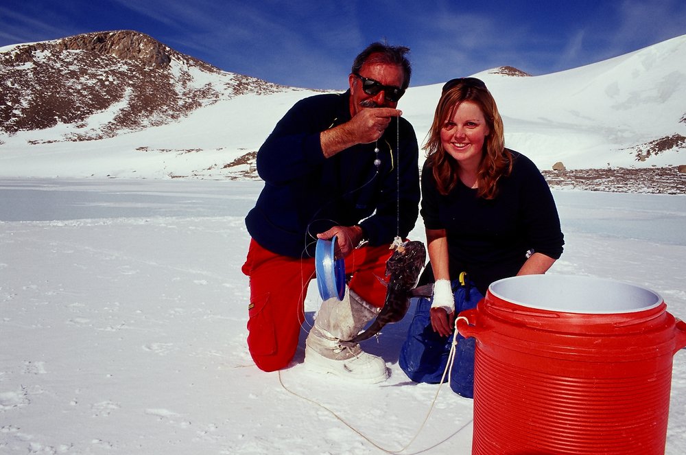 Victoria Metcalf and M Vacchi fishing Tethys Bay