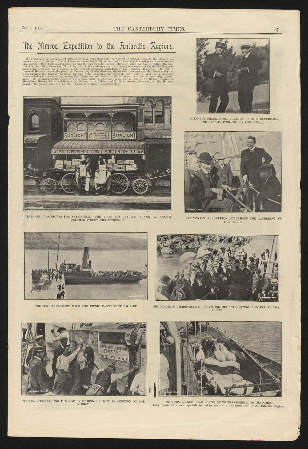 Shackleton's Nimrod Expedition as Reported in the 'Canterbury Times', 8 January 1908. Antarctica NZ, accessed 19/03/2026, https://adam.antarcticanz.govt.nz/nodes/view/47777