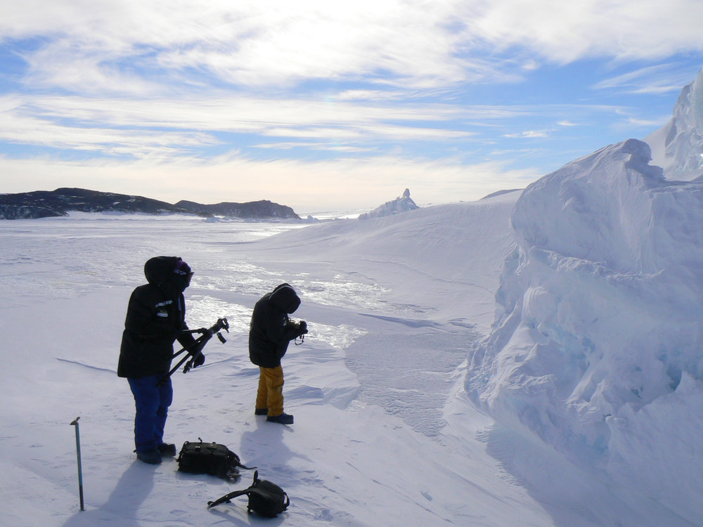 Joyce setting up camera at Erebus Ice Tongue, Neil also with camera, behind.. Antarctica NZ, accessed 24/03/2026, https://adam.antarcticanz.govt.nz/nodes/view/47821