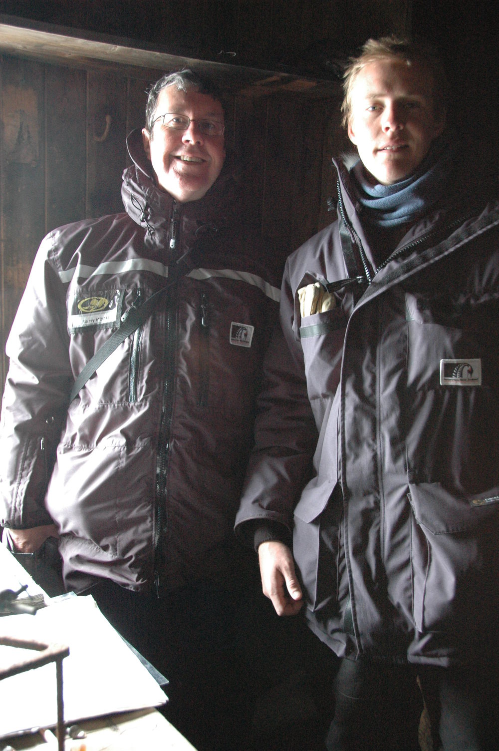 Garry Moore and James Blake inside Historic Hut