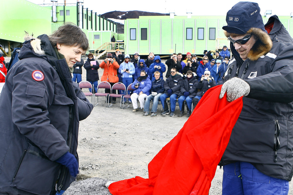 NZ Prime Minister Helen Clark and Sir Edmund Hillary Removing the Shroud from the Commemorative Plaque. Antarctica NZ, accessed 02/04/2026, https://adam.antarcticanz.govt.nz/nodes/view/48341