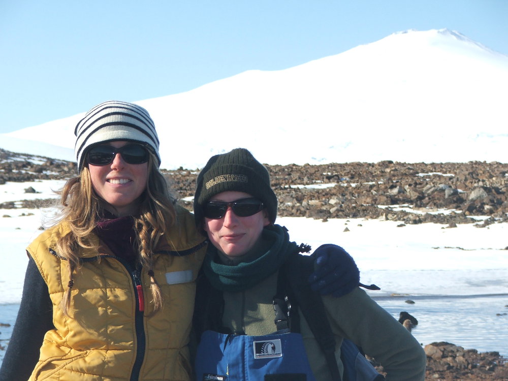 Melianie and Konnie with Mt Melbourne
