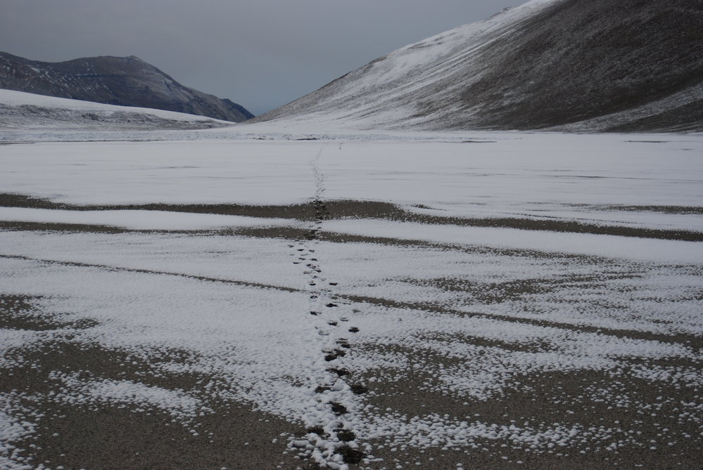 Tracks in the snow, looking west towards Lake Colleen and the Garwood Glacier. Antarctica NZ, accessed 20/03/2026, https://adam.antarcticanz.govt.nz/nodes/view/48693
