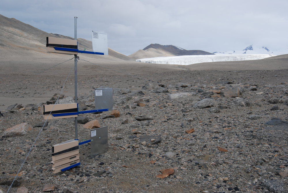 BSNE wind-blown soil collector and the face of the Adams Glacier. Antarctica NZ, accessed 02/04/2026, https://adam.antarcticanz.govt.nz/nodes/view/48694