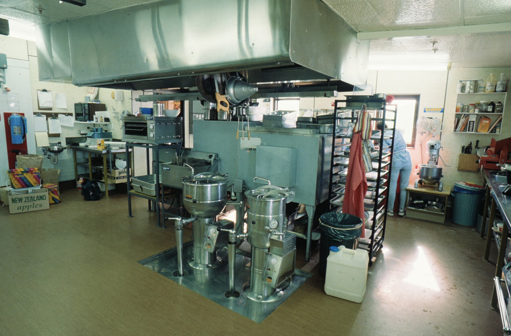 DescriptionBases, Scott Base Interior, Hangar, KitchenPhotographerWilliam "Billy" BoltonSeason1993-1994Date Taken1993-1994 SeasonOriginalSlideNo. People1LocationScott BaseGeolocation[1] Position