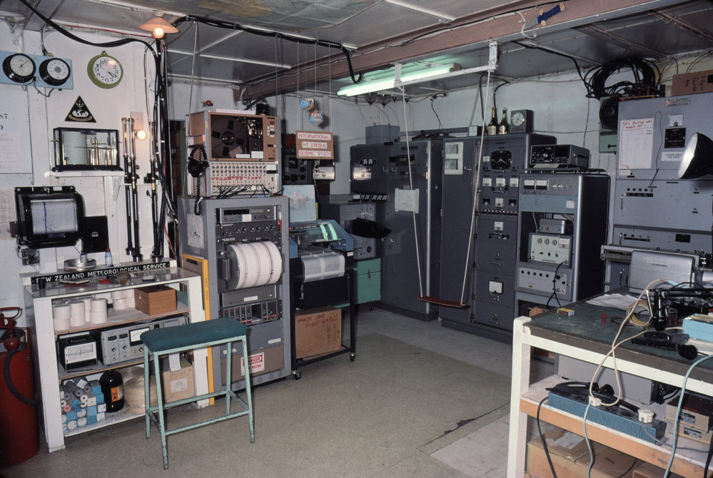 DescriptionLaboratory with new & old Ionosondes - and Mt Erebus seismic recording gearPhotographerKim WesterskovSeason1982-1983Date Taken1982-1983 SeasonOriginalSlideLocationScott BaseGeolocation[1] Position