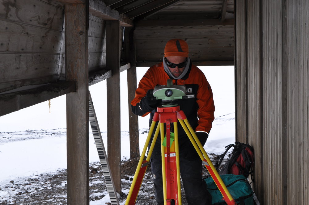 Matt Amos levelling Discovery Hut