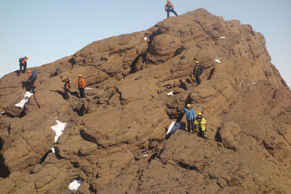 Flying back from Cape Royd's we came across these intrepid rock climbers on Castle Rock.