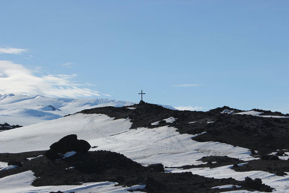 The cross erected on Windy Hill at Cape Evans in remembereance of the three exploreres who lost there lives on the Ross Ice Shelf and the sea ice May 1916.