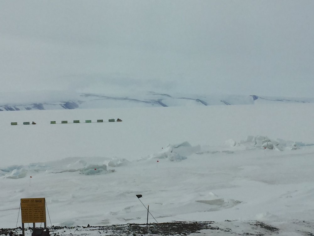 K131 Ice Training Driving past the Scott Base sign