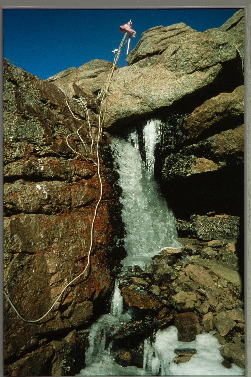 Lichens and frozen waterfall