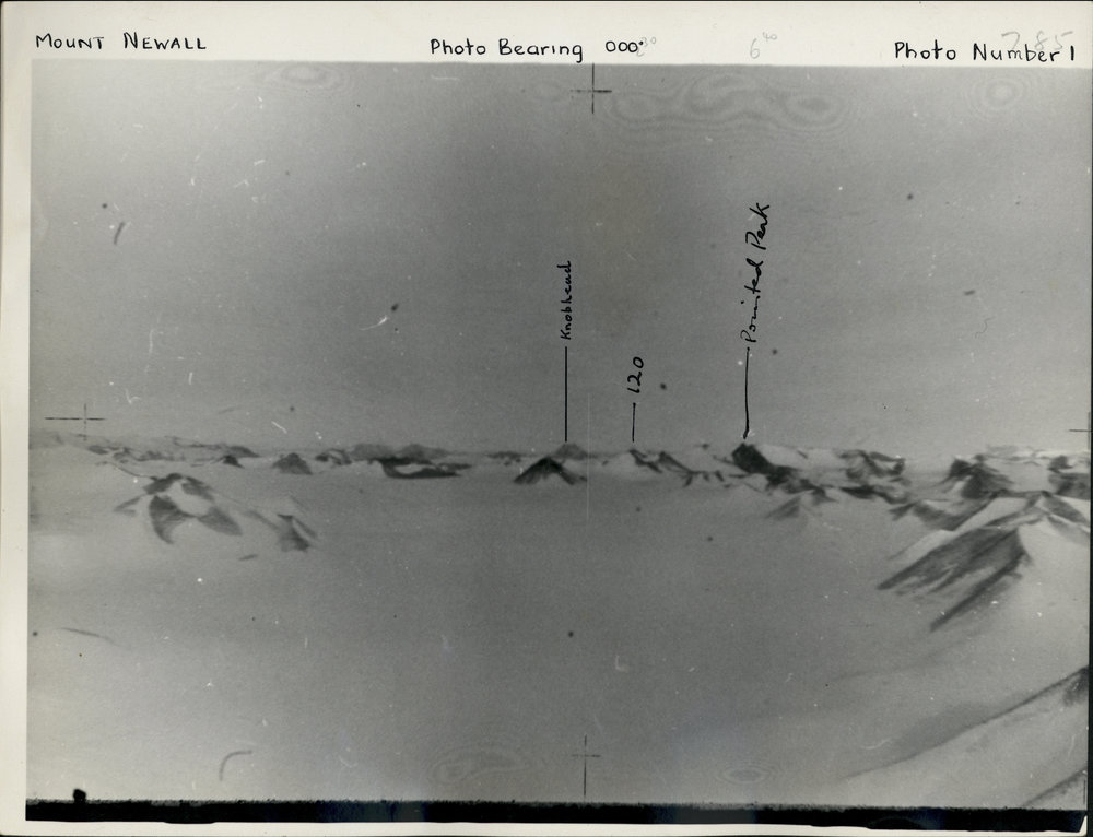 1 - From Mt Newall, Round Zeroed on Knobhead. Knobhead, 120, Pointed Peak - comps book 2