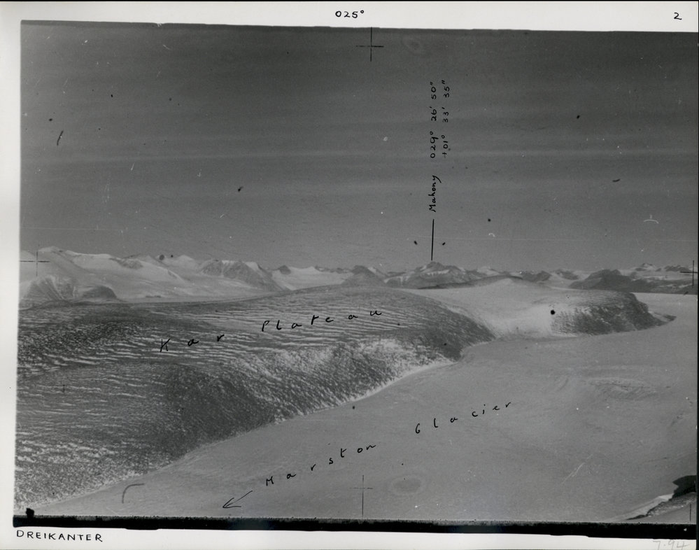 2 - From Dreikanter, England. Azimuth on Mt England 180 00' 40". Mahoney, Kar Plateau, Marston Glacier