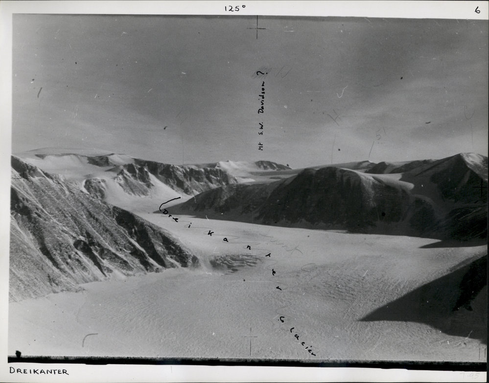 6 - From Dreikanter, England. Azimuth on Mt England 180 00' 40". Mt SW Davidson, Driekanter Glacier